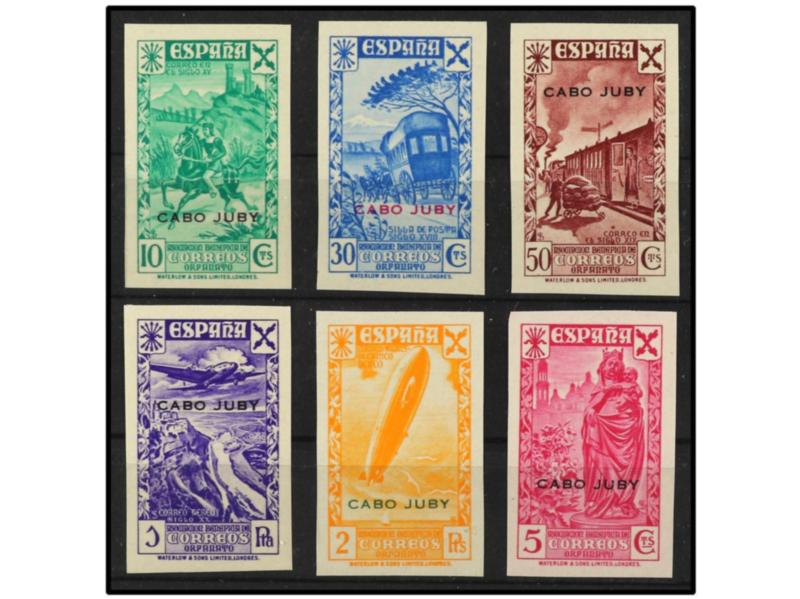 COLONIAS ESPAÑOLAS: CABO JUBY. BENEFICENCIA. SERIE COMPLETA, 6 valores. SIN DENTAR. Ed.1/6s. Cat. +220€. (Image1)