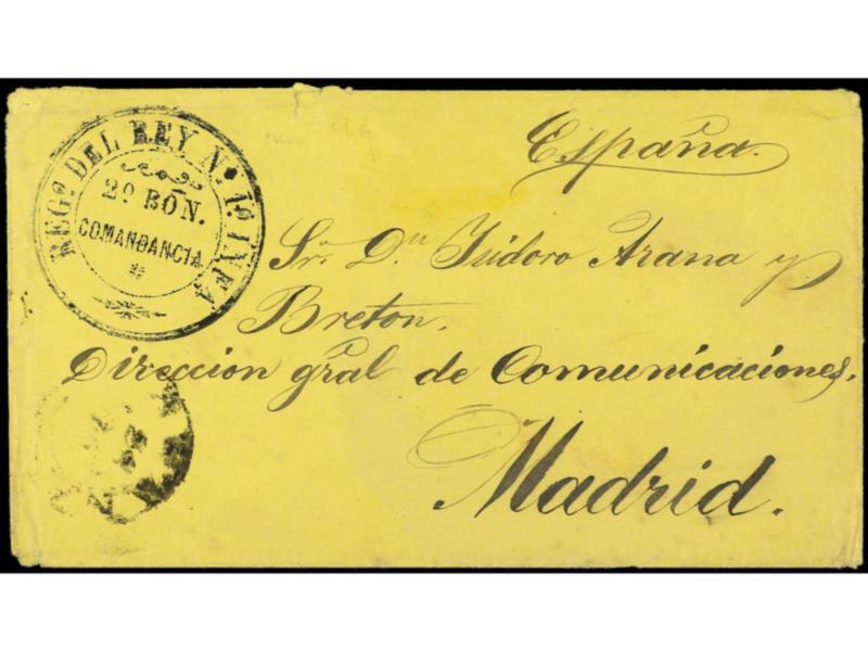 CUBA. 1870. PRIMERA CAMPAÑA. Sobre a MADRID. Marca de franquicia militar REGº. DEL REY Nº1 INFA/2º BON/COMANDANCIA. (Image1)