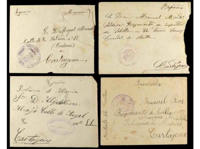 CUBA. 1896-98. FRANQUICIAS MILITARES. Conjunto de 15 cartas con diversas marcas de Franquicia utilizadas durante la Guerra contra los insurrectos cubanos y contra U.S. (Image1)