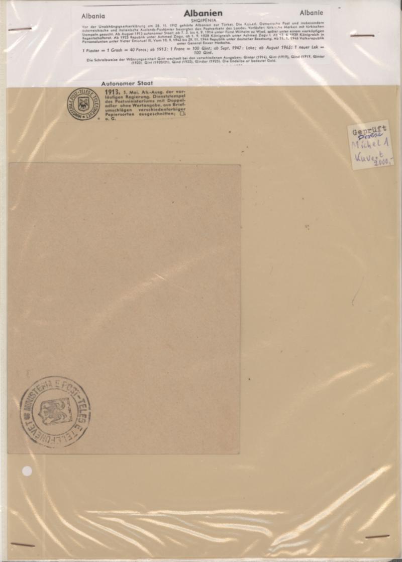 Albania 1913/1999, saubere überwiegend komplette Sammlung ab Nr.1 in allen Erhaltungen gesammelt, gestempelt/ungestempelt/postfrisch, teils auch doppelt in beiden Erhaltungen, mit allen Blocks, einige bessere Werte gepr. bzw. mit Attest u.a. Mi.-Nr.1, 7,10, in 3 Vordruckalben Condition: o (used)/* (mint hinged)/** (mint never hinged) (Image)