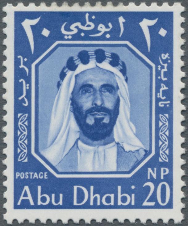 Abu Dhabi 1964 20 n.p. ultramarine, PERF 13x13½, mint never hinged but gum with little blunt spots, fine. (SG £400) Condition: ** (mint never hinged) Catalog number(s): SG 3a (Image)