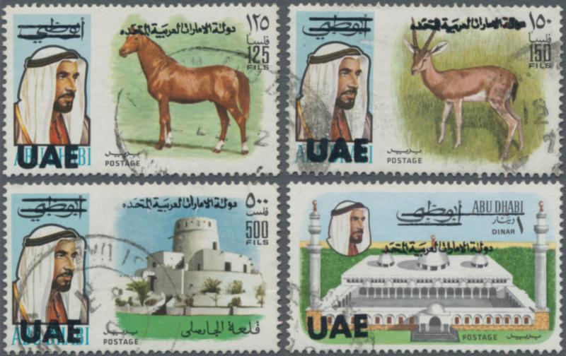 Abu Dhabi 1972 "UAE" overprint on near to complete set (except the 35f.) up to 1d., all used. (SG about £570) Condition: o (used) Catalog number(s): 84-86, 88-95 (Image)