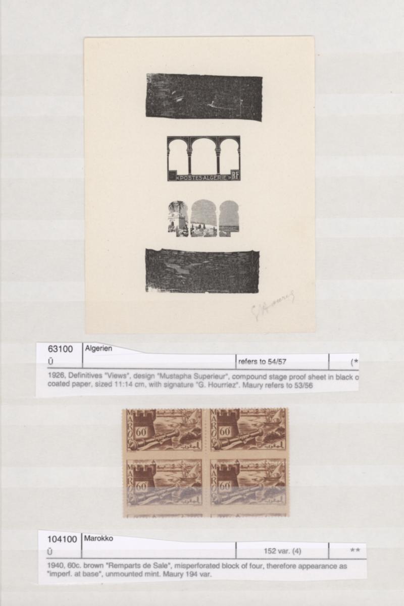 Africa 1926/1944, French Africa, specialities of Algeria, Morocco, Senegal, Guinea and Mauretania, comprising epreuves (d'artiste), die proofs, colour proofs, etc. Condition: (*) (mint without gum)/** (mint never hinged)/* (mint hinged)/Cover (Image)