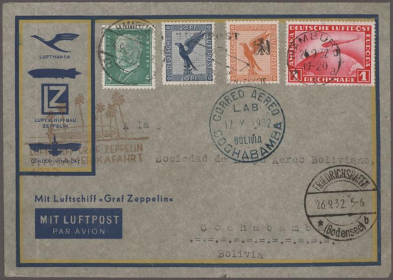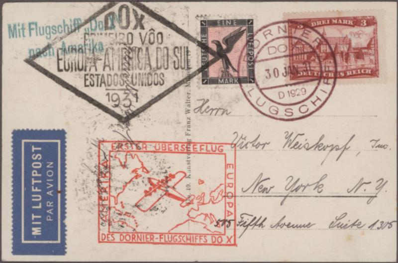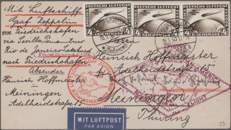 Air Mail Interessanter Posten von ca 110 Belegen mit seltenen Flügen, Zuleitungen, Stempeln, guten Frankaturen wie 4 RM Südamerikafahrt (3St) als MeF., sowie etwas Memel, Danzig, Saar und Auslandsfrakaturen Condition: Cover (Image)