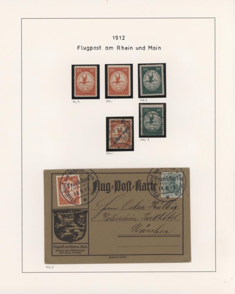 Air Mail - Germany 1912-1960 (ca), Sammlung von ca 170 Belegen in 2 Ringbänden, beginnend mit 1912, Flugpost Rhein-Main, dabei 30 Pfg. Mehrfachfrankatur von drei Exemplaren, Gelber Hund gestempelt sowie auf zwei Karten, spätere Jahrgänge ebenfalls reichlich vertreten Condition: Cover (Image)
