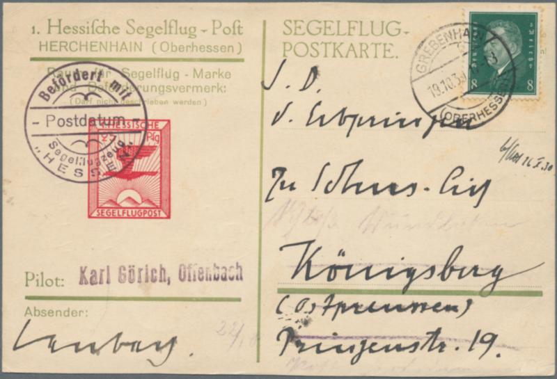 Air Mail - Germany 1927/1936, Lot von sechs Briefen/Karten, dabei Segelflugkarte Herchenhain 1930, DOX-Karte 1930, Zeppelin Ägyptenfahrt 1931, usw. Condition: Cover (Image)