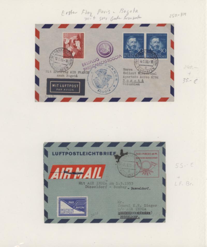 Air Mail 1935/1982, umfassende Sammlung Erst- und Sonderfüge mit ca. 610 Belegen, dabei u.a. TWA, SAS, Panair do Brasil, PanAm, KLM, El Al, Sabena, Luxair, Air France, Olympic Airways, und weitere, etliche bessere Frankaturen Bund/Berlin, Zuleitungen, usw. Condition: Cover/postal stationery (Image)