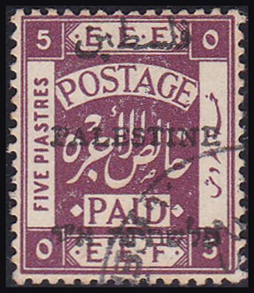 1920. Jerusalem II, POSTAGE STAMP Ba: 43 used 5p, deep purple, 14x14, Very Rare. Cat. $1300(Image 1) (Image)