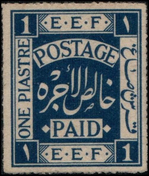 1918, "E.E.F.", 1 Pia indigo printing (SG 1), The Blues 1918, 10 Feb. wmk. 1, rouleted Cat. $450. Very Fine.(Image 1) (Image)
