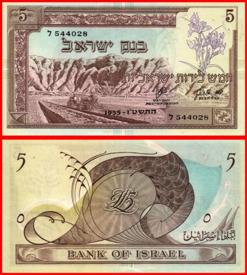Israel, Bank of Israel Pick # 26a 1955 5 Lirort. S/N ל 544028 UNC (Image)