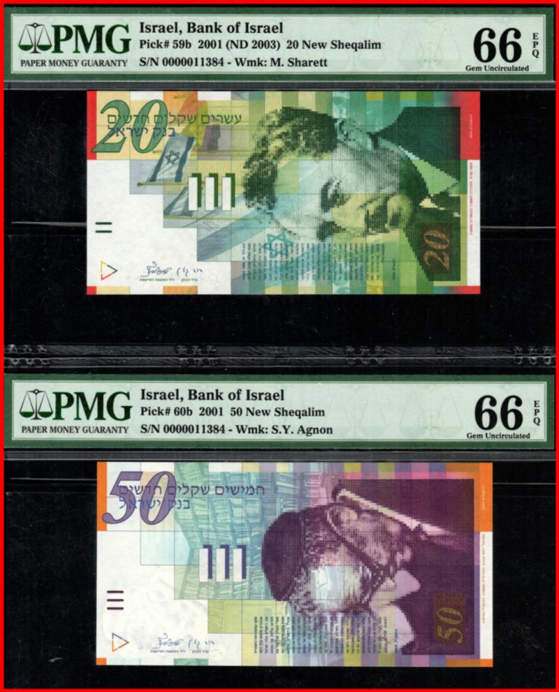 Israel Bank of Israel Pick # 60b 50 New Sheqalim S/N 0000011384 PMG 66 EPQ (Image)