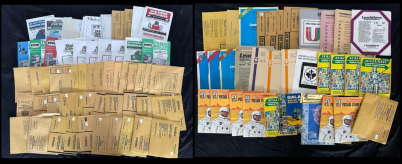 Supplies, A world group of supplement pages, includes Minkus (28), Scott(16), Leuchtturm(8), Harris (4) Stanley Gibbons (GB 6), plus 18 other companies, as new in original packets, (Image)