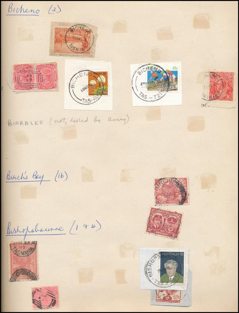Two albums with a slightly remaindered collection noted some on Kangaroos & plenty on KGV Heads plus a few Colonial-era numerals and lots of post-WWII items, plus a batch of 400+ "all-different" cds cancels and an extensive range of Launceston cancels on Pictorials sorted into envelopes by type filling a shoebox, the quality of the strikes rather variable but still plenty of nice ones throughout. Weighs 5kg.