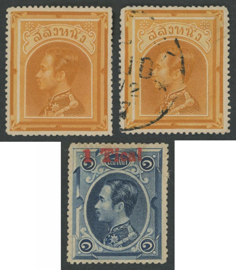 Semi-specialised collection on American leaves including First Issue mint set plus 1sal used x2, 1885-87 '1 Tical' on 1 solot indigo SG 7 mint, 1889 1a on 1sio used x2, range of 1880s-1890s Surcharges including a few mint & used blocks, 1899-1904 Sidefaces used to 64att, 1908 Jubilee array including mint blocks of the 1att x30, 3att x15 and 4att on 5att x9 also 18att mint x3 & used x4, Vajiravudh used to 5b including used 2stg block of 12 with '.../Paknampoh' cds and block of 15, 3stg blocks of 6 x2 (one with '.../BEJRABURI' cds, 10 and 16 and mint 28stg block of 4, 5stg used block of 6 and strip of 7 with '.../Kalasin' cds, 10stg used blocks of 4 & 6, 1919 5stg on 6stg used block of 12 with 'Bhukot' cds and 10stg on 12stg used blocks of 8 x2, etc, many with minor varieties noted, much appears to be fine to very fine.