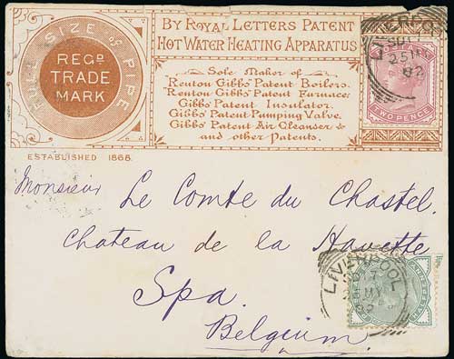 McCorquodale & Co. 1881 (Nov 22) Front bearing second type dummy stamp in venetian red, addressed to Leytonstone, cancelled by London E.C Squared circle. Glue stains and minor stamp faults but a unique postal use of this dummy stamp.