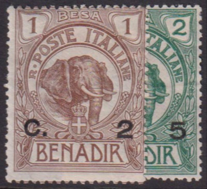 Elephants: Somalia 1905 2c on 1b & 5c on 2b. SG 10-11. Cat £32. Mint. (Image)