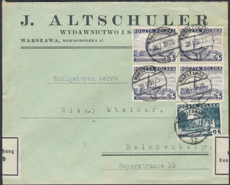 Thematics, Judaica., , Polen. Letter 1938 to Germany from Dr. Josef Altschuler, jewish world class violinist who outsmarted Gestapo and went to Palestina. 1 more image is available at www.philea.se. (Image1)
