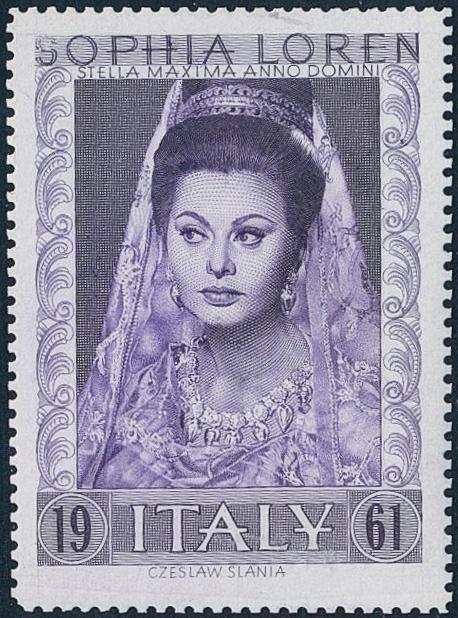 Slania, Italy, Michel (*), "SOPHIA LOREN". Steel engraving in ultramarine. Perforated. (Image1)