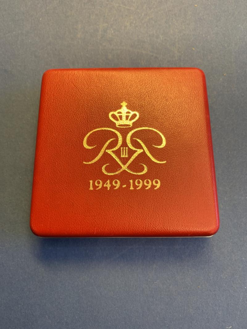 Slania, Monaco, Michel **, Medallion in silver "50th Anniversary 1949–1999", (41 mm), 30,03 g. Proof. Design of portrait and cypher by Slania. Distributed to favorite associates of the Prince only. Thus scarce! In an elegant box. 3 more images are available at www.philea.se (Image1)
