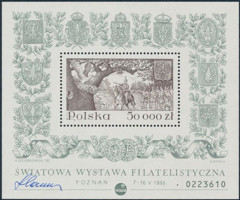Slania, Poland, Michel 3449A **, 1993 POLSKA'93 souvenir sheet, perforated, signed "Slania". (Image1)