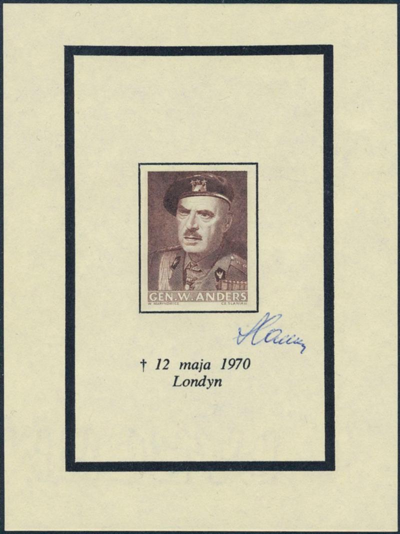 Slania, Polen, Michel (*), General W. Anders. '12 maja 1970 Londyn'. Small sheet with print in brown, signed 'Slania'. (Image1)