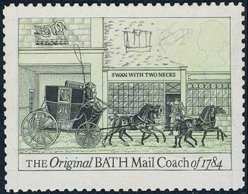 Slania, Storbritannien, Michel 997 (*), 1984 Bath-Bristol Mail Coach 16 P. Stamp proof (with intended value 16½ P and Queen's head hardly visible) hand-coloured by Slania. Unique item! (Image1)