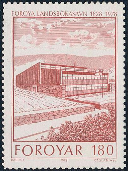 Slania, The Faroes, F 42 (*), 1978 150th Anniversary of National Library 1.80 Kr. Stamp proof in reddish brown. (Image1)