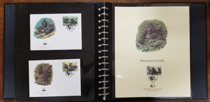 WORLD WILDLIFE FUND, Collection of 64 Diff. F.D.C.s (With Cachet, No Addr.) + 64 Diff. Commemorative Panels (With Stamp & "WWF" First Day Cancel), Stamps are from 16 Diff. Countries, 1983-87 Issues, All are Contained in 3 "WWF" Albums (With Slip Covers), Albums Also Include Pages with Information About the Animals, All are VF Cond., Original Retail Price was about $800.00 (20. lbs.) (Image)
