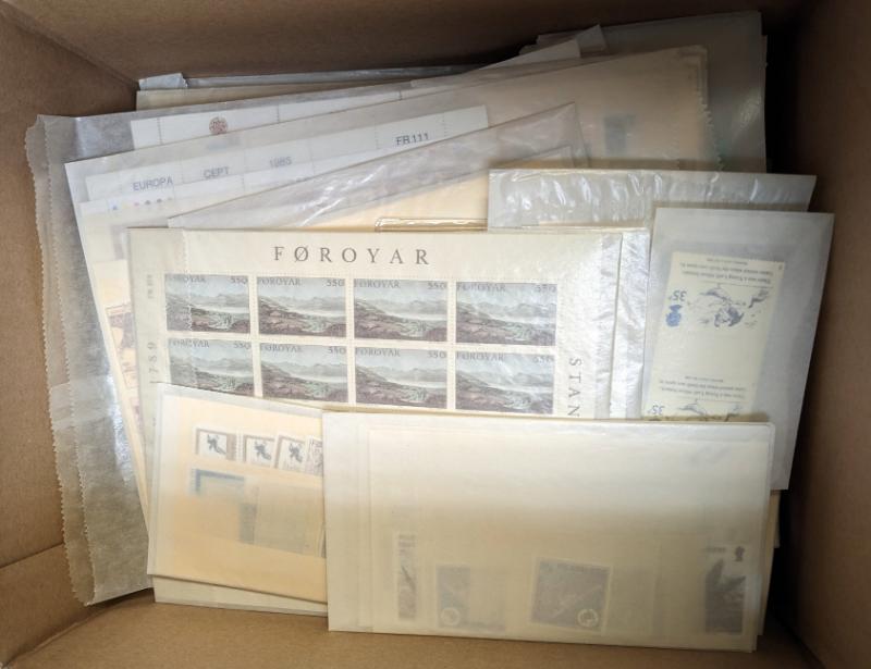 NEW ISSUES Accum over (3,500+) in (1000+) glassines w/ cplt sets, sgls, S/S, sheetlets, etc, mainly fresh & NH from a variety of Brit Colonies, Faroe, France, Germany, Great Britain, Ireland, Isle of Man, Japan, Jersey, New Zealand, Spain, Sweden, Switz, Venezuela & many more, fresh & clean NH (Image)