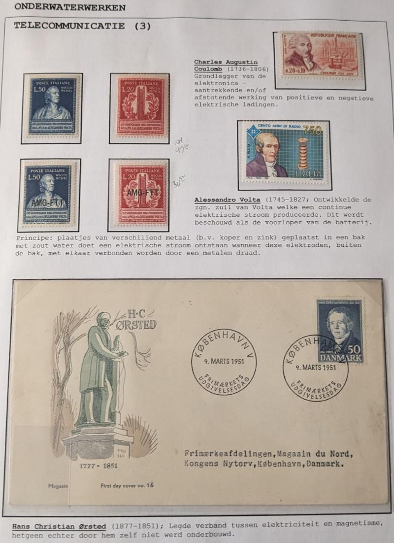 UNDERWATER CABLE COMMUNICATIONS Exhibit quality collection abt (350+) stamps incl Unused: Ascension #31, Canada 85-86, France 306 NH, Germany 693, Italy 526-27 NH, Italy Trieste 53-54; abt (60) cvrs, some ephemera featuring telegraphs, cable ships & more; beautifully displayed & written in Dutch by famous underwater geologist; has (4) page intro letter of history of cable laying & cable ships in English; gen VF H/NH (Image)