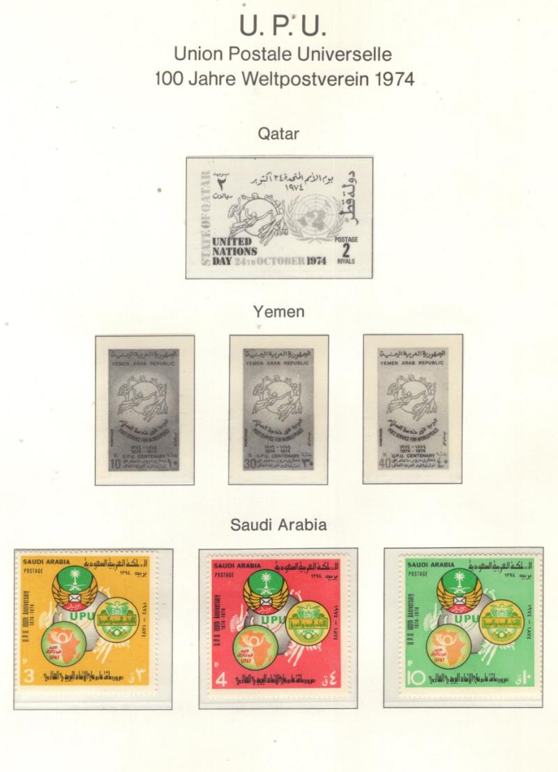 1974 UPU CENTENARY Unused Collection (100s) sgls, sets & S/S in a Lighthouse hingeless specialty album incl Saudi Arabia #645-57, Qatar 384-89, Bangladesh 68a, Honduras C562-74, Romania 2492a imperf, Cambodia 359-67a & more, gen F-VF NH (Image)