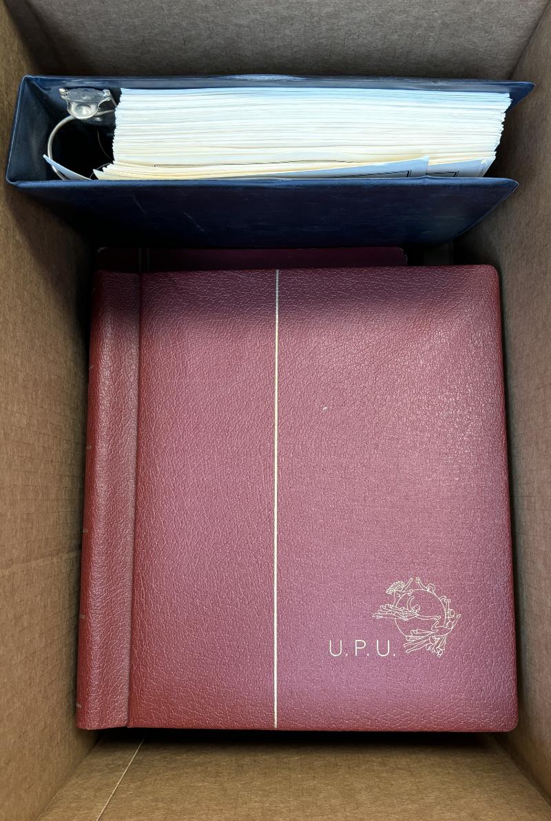 (5) Topical Collections in albums or binders; Lighthouse hingeless album for 1974 UPU Centennial collection, well filled incl PRC & FSAT, many S/S, likely all NH; Minkus FAO Part 2 album pgs, well filled unused hinged; homemade train topical binder, mostly CTO; Mystic Boy Scout Centennial 2007 collection WW S/S or mini-sheets; Minkus World Refugee Year album, well filled w/ unused H/NH in mounts & FDCs; gen F-VF+ (Image)