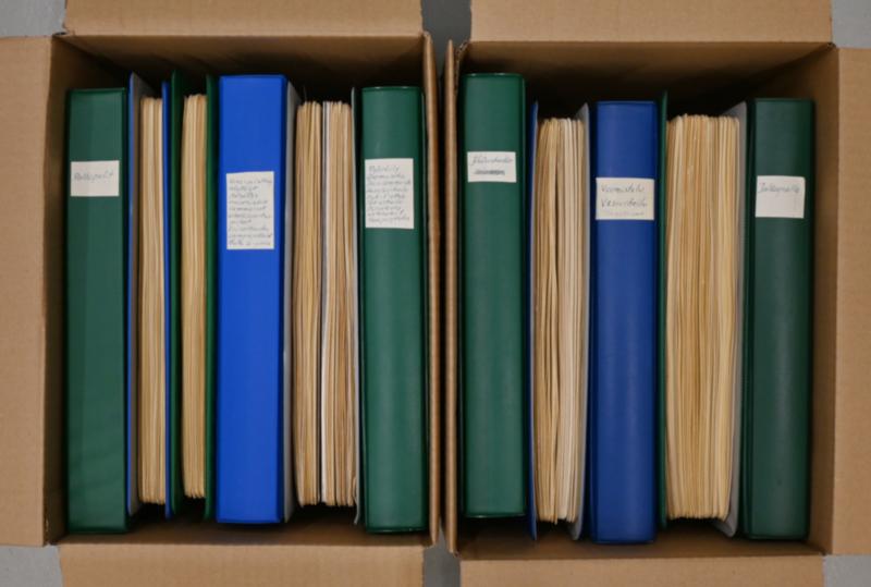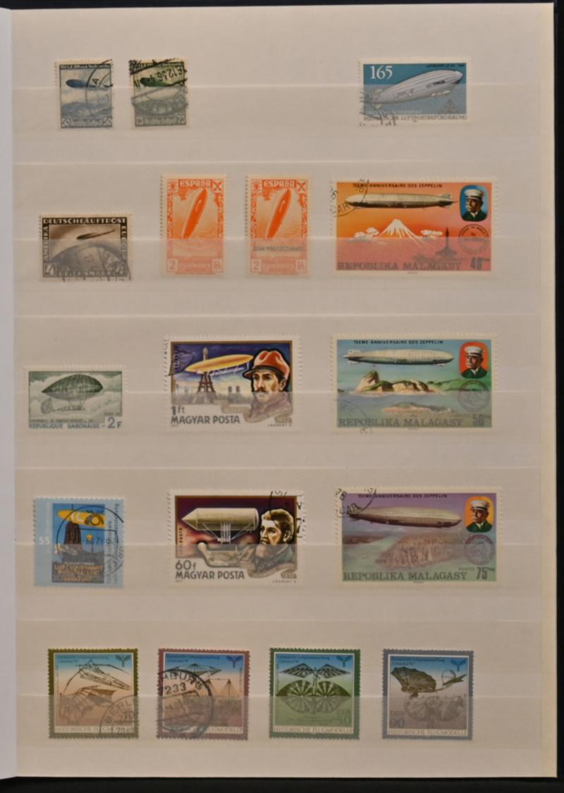 Material related to aviation and aviation history in two albums: "Meilensteine der Luftfahrt” and ”Zeppeline und Luftschifte auf Briefmarken”. Albums not quite full but also some extra material (Image)