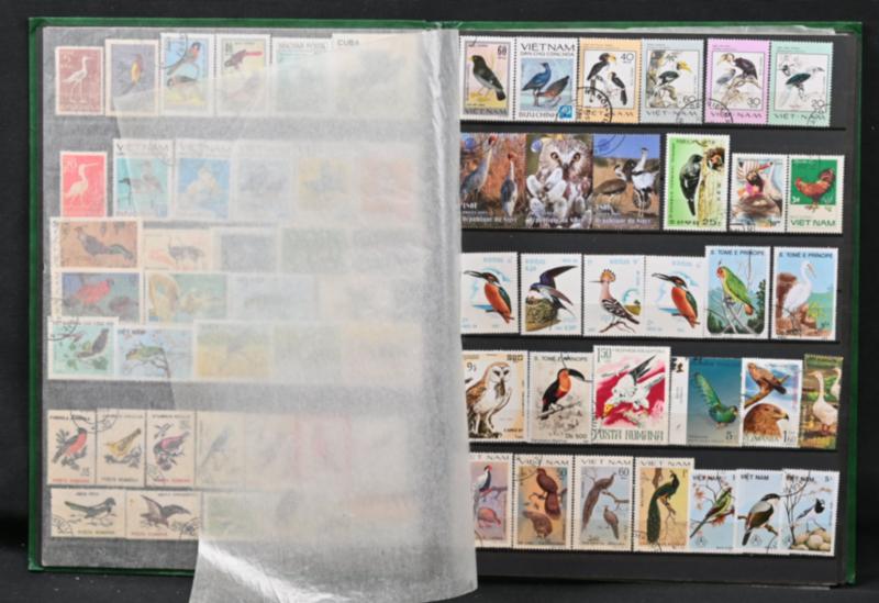 Birds, fine collection of stamps from all over the world in six stockbooks. Over 5000 different stamps. Also a seventh stockbook with several hundreds of duplicates (Image)