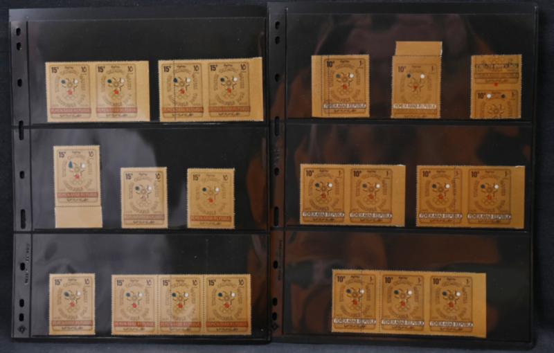 Olympics, Grenoble 1968, fine selection of printing errors and varieties on Yemen Mi 613-615 stamps. Over 50 stamps including eg. double print, missing colour, imperforate, double perforation etc. A fine lot! (Image)
