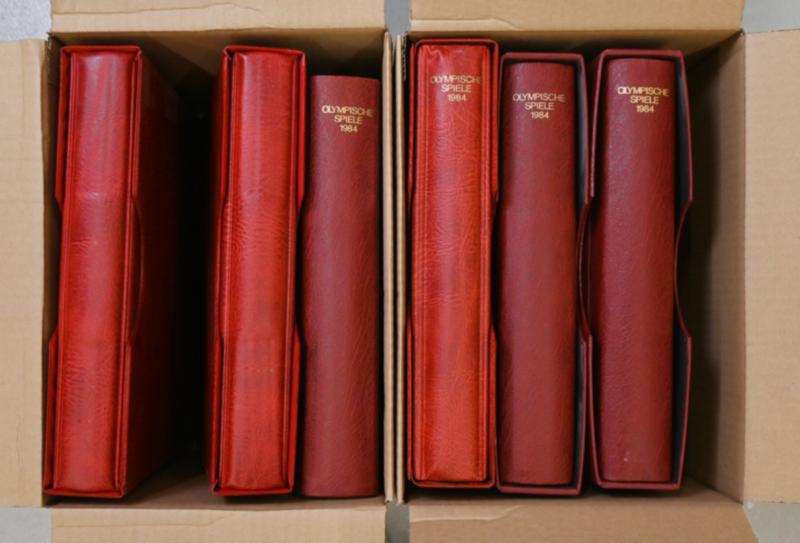 Olympics, 1984 games specialized collection in six thick albums on beautiful thematic pages. Material from all around the world organized in alphabetical order by country. Huge amount of MNH ** stamps, sets, miniature sheets, also some postal stationeries etc. Album pages seems to be very full, no many empty spots. An opportunity! (Image)