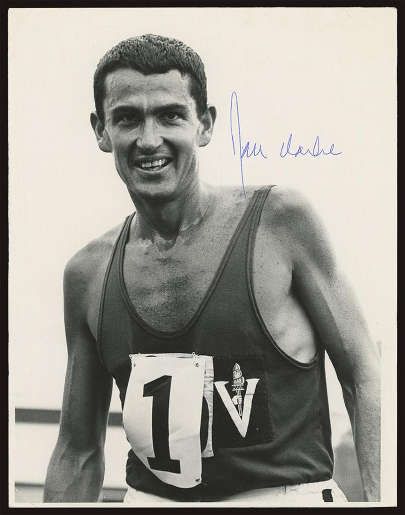 Athletics champions extensive collection in 19 albums, with press & magazine articles, clippings & images; photocopies of articles; correspondence with historians; photographs (148); signed photographs (46), signed letters (50) & other signed items (12), with autographs including Percy Cerutty, Ron Clarke, Sebastian Coe, Eamonn Coghlan, Rob De Castella, Herb Elliott, Walter George, John Landy, Allan Lawrence, Fred Lester, Alain Mimoun, Steve Moneghetti, Dave Power, Jim Ryun, Dave Stephens & Albie Thomas, mainly Fair/Very Fine. Weighs 39kg. Ex Trevor Vincent OAM.