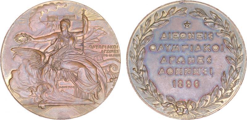 1896 Athens Olympics Participation Medal in bronze (by Pittner of Vienna), 50mm diameter, well preserved with sharp edges, beautiful brown colour and lots of original lustre. Ex Gary Fenton collection. From the First Modern Olympiad & therefore the key to the series. (Image1)