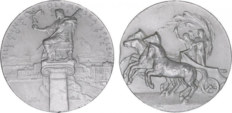 1912 Stockholm Olympics Participation Medal, in pewter, 51mm diameter, designed by Bertram Mackennal & Erik Lindberg, minted by Vaughton in Birmingham, Fine condition. Ex Gary Fenton collection. (Image1)