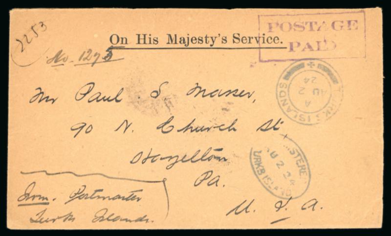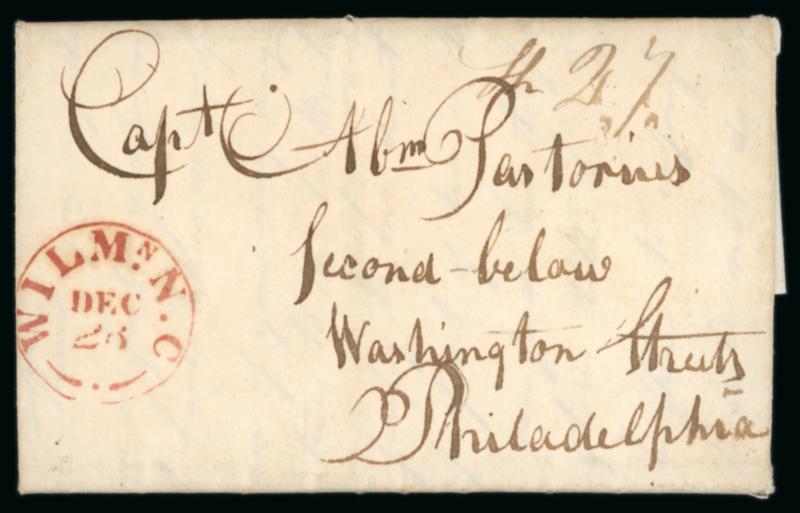 1822 entire datelined "Turks Islands December 11th 1822", sent to Philadelphia USA, with Wilmington N.C. transit, endorsed at top right "Sh 2 /", fine and early mail from Turks. (Image)