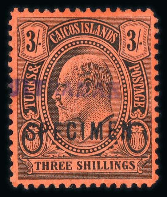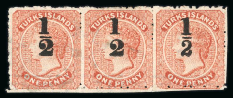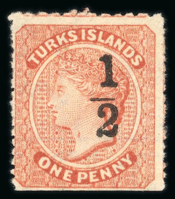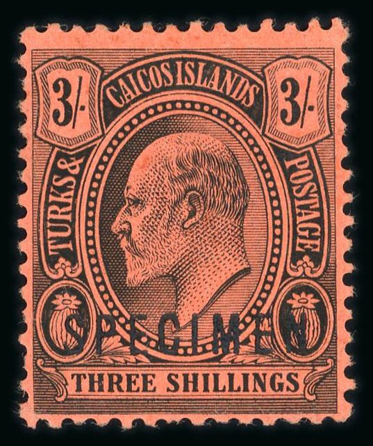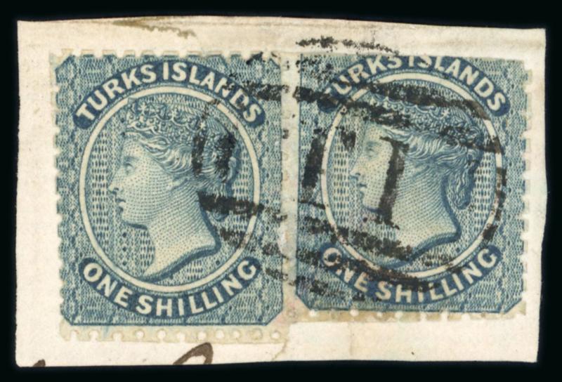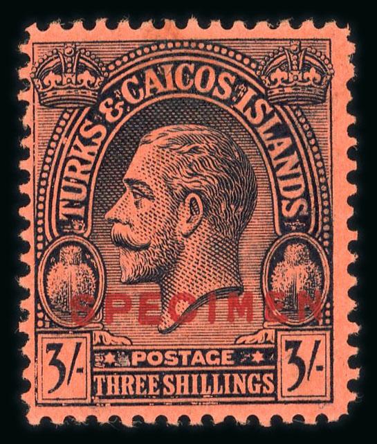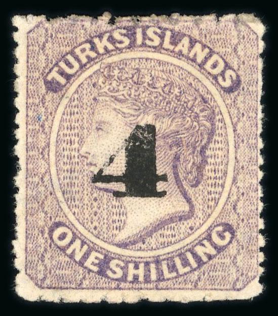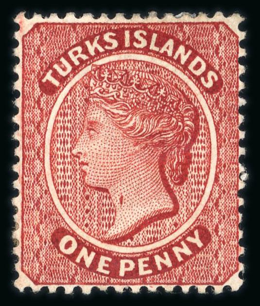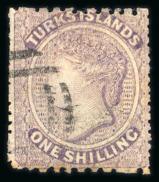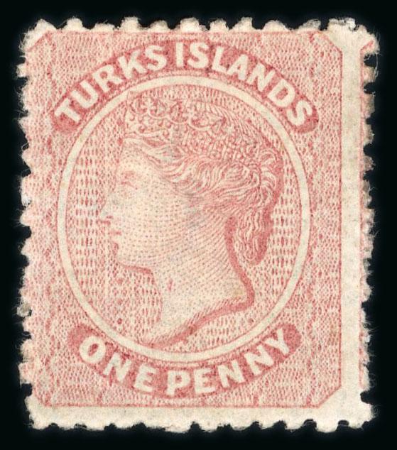 1867-1968 comprehensive mint and used collection neatly presented in an album, commencing with 1867 1d x 5, 6d x 2 and 1/- unused plus the 3 values used (and 6d in pair on piece), 1873 1/- used (Cat. £2500, very scarce), the 1881 and 1882 sets mint and used with 1882 2 1/2d in Plate 1 block of 9, 1889 2 1/2d in mint strip of 5 opt SPECIMEN and 1893 1/2d on 4d SG 68 mint and used, SG 69 in mint pair. The Ed VII issues include SPECIMENS with 1d, 2d, 2 1/2d and 1/- opt ULTRAMAR, with most KGV sets mint, used and SPECIMEN (with 1913 printer's sample 3/- x 2). Some blocks also, including 1922 2/- in block of 12, a superb section of War Tax issues and most issues mint and used (noted 1938 set opt SPECIMEN) to 1968. A fine collection with catalogue value well in excess of £10'000, plus "Turks and Caicos Islands to 1950" by Challis. (Image)