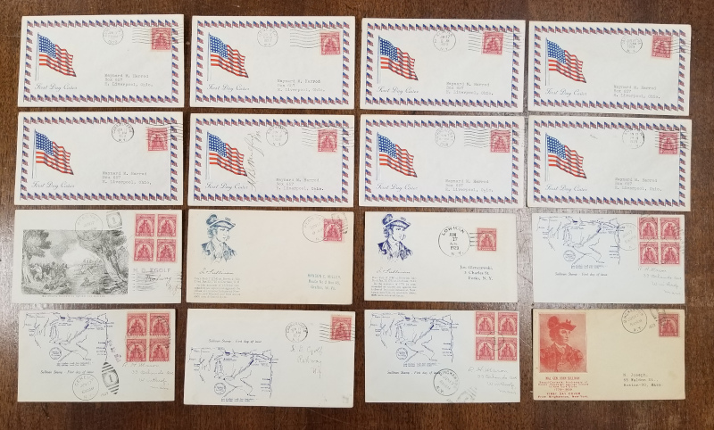 783 "3 c. Oregon", July 14, 1936 Issue, 55 Diff. Cacheted F.D.C.'s (11 Cmpt. Sets), 4 Sets are Blks. (4 Stamps Each), Sound Cond., F-VF, SCV is About $700.00 (Image)