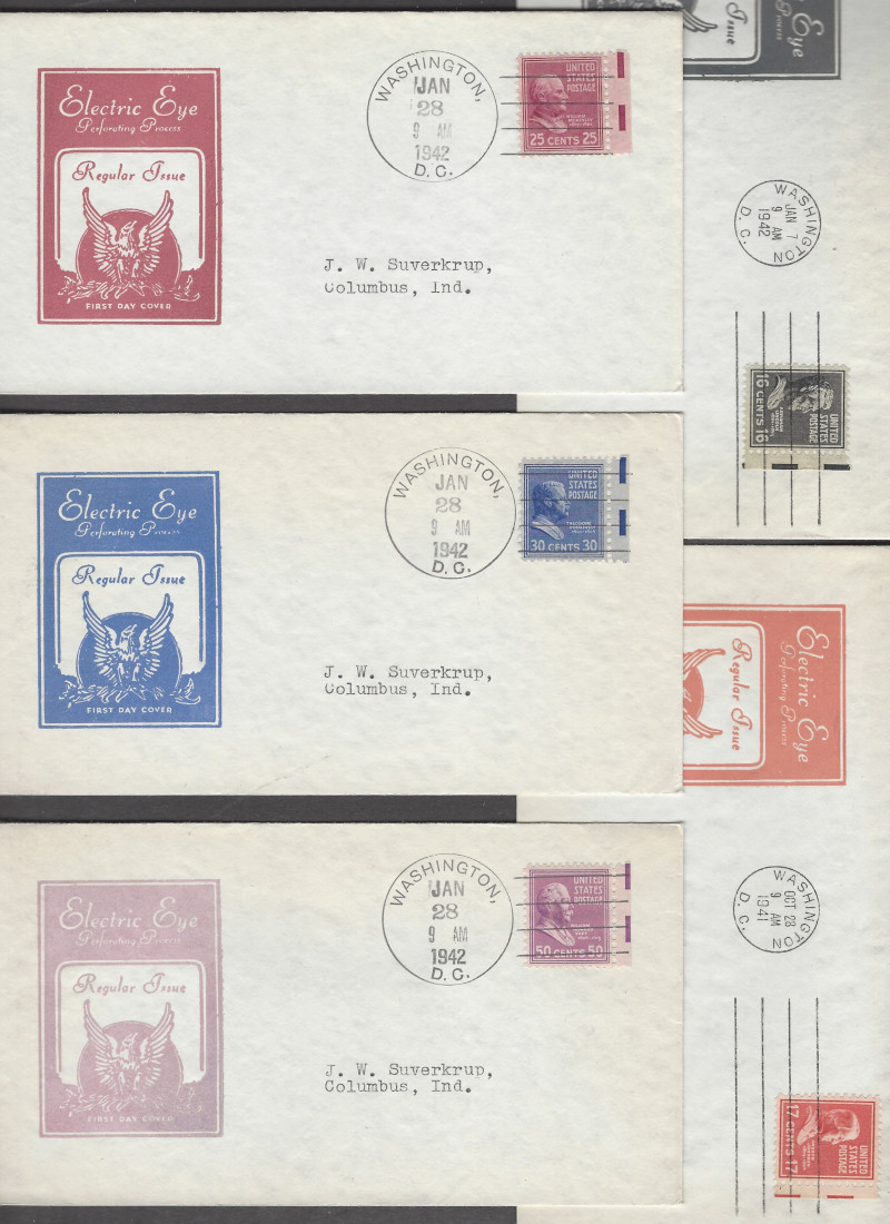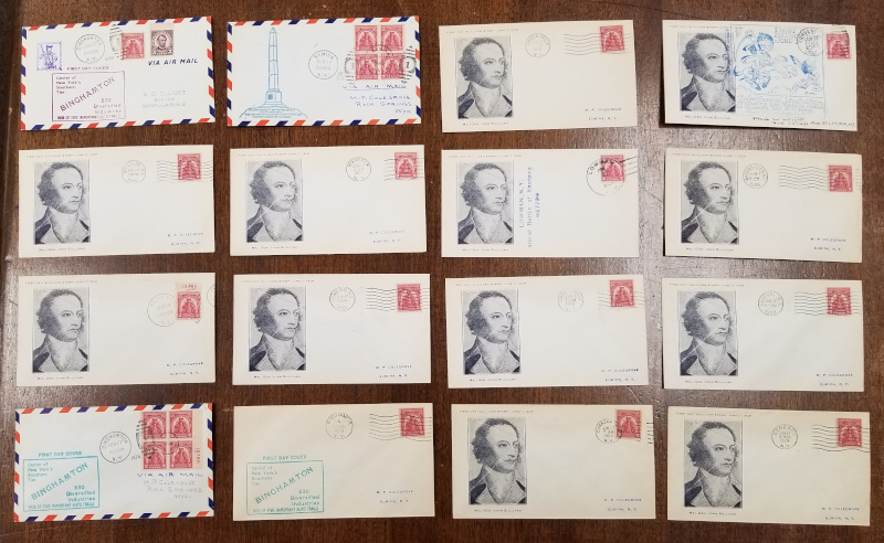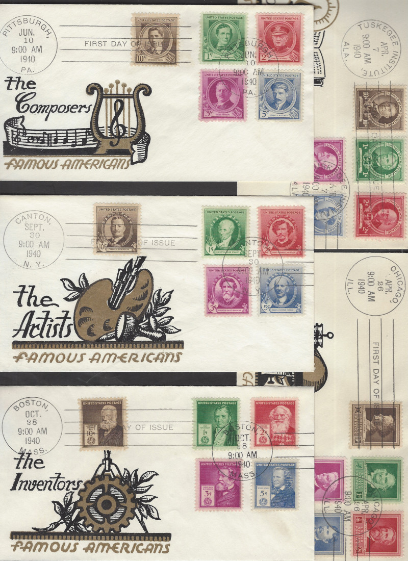 859-893 (35), "Famous Americans", 4 Diff. Cmpt. Sets (35 Covers in Each Set), Plus 7 Diff. Covers (Each with a Cmpt Set of 5 Stamps), All Sets with Matching Cachets, Sound Cond., VF, SCV is About $885.00 (Image)