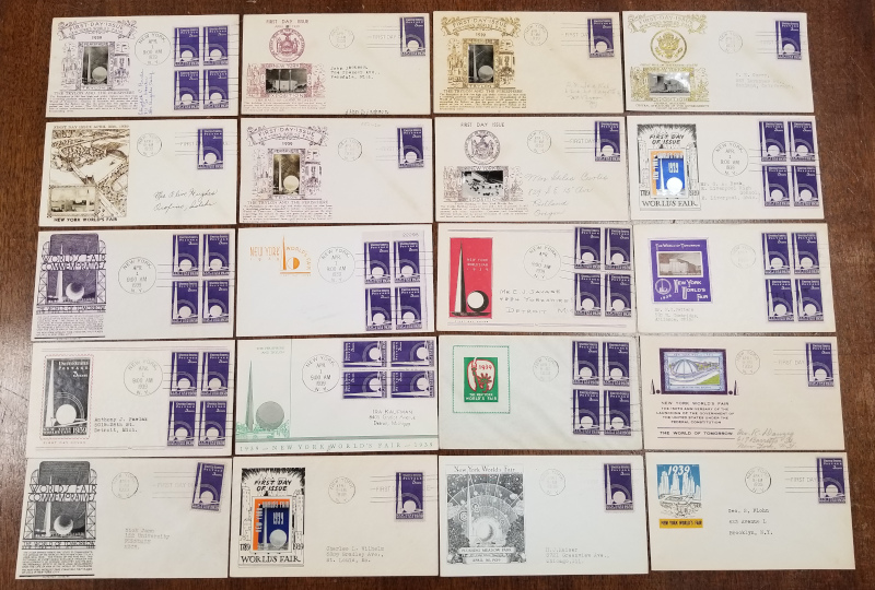 853 "3 c. World's Fair," Apr. 1, 1939 Issue, 50 Diff. Cacheted F.D.C.'s, Includes 9 with Blks. of 4 and 7 with "Crosby" Cachet, Sound Cond., F-VF, SCV is About $1,000.00 (Image)