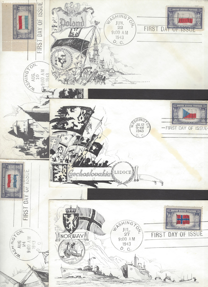 909-921 (13), "Overrun Countries", Cmpt. Set of F.D.C.'s, All with Matching "Day Lowry" Cachets, No Addr., Light Toning from Envelope Glue (Typical for This Issue), F-VF Cond., Scarce Set, SCV is About $130.00 (Image)