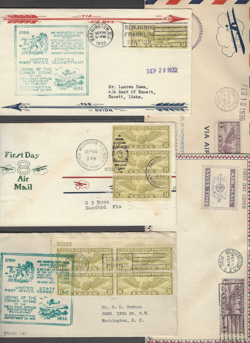 C12, C17, 15 Diff. Cacheted F.D.C.'s, Feb. 10, 1930 & Sept. 26, 1932, Airmail Issues, Sound Cond., One #C17 Cover is Neatly Opened at Left, F-VF, SCV is About $1,100.00 (Image)