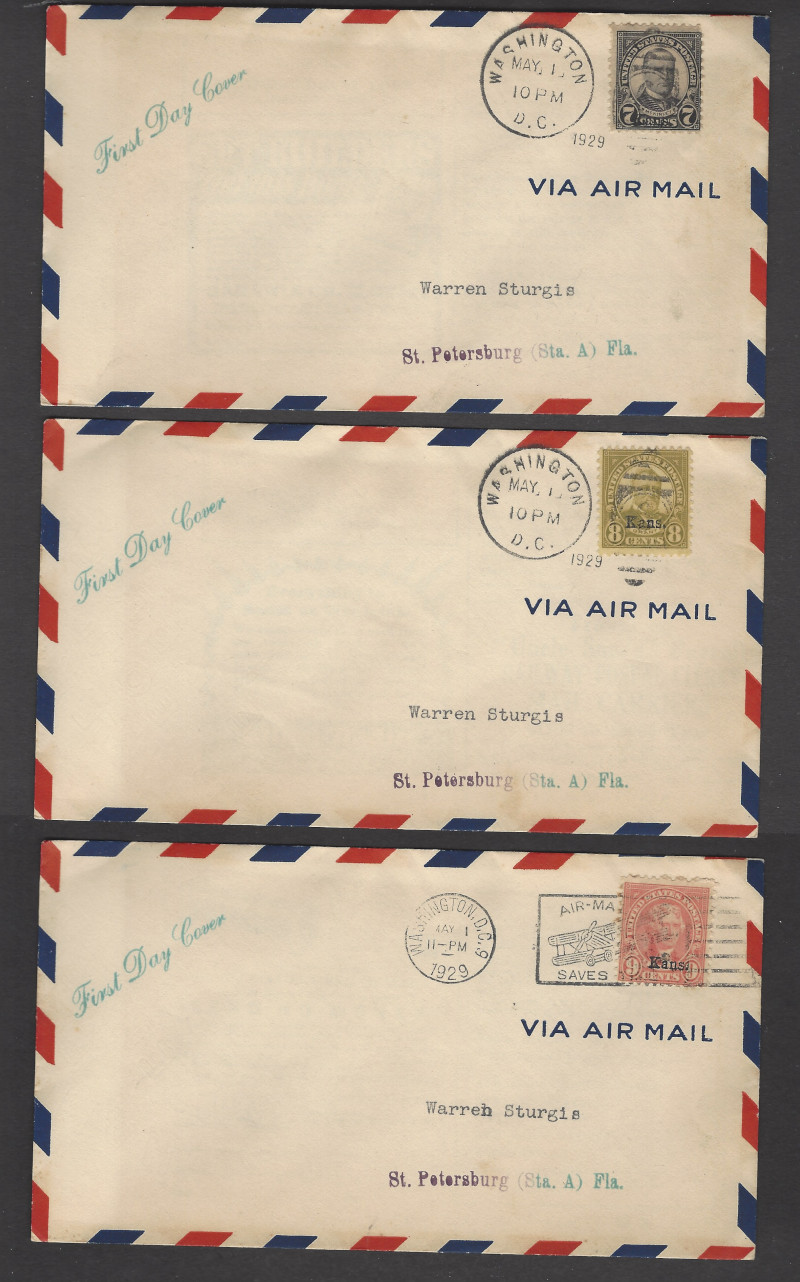 658-667, 669, "Kansas-Nebraska", May 1, 1929 Issue, 11 Diff. F.D.C.'s, With Cachet & Addr., 1 c. to 9 c. "Kansas" + 1 c. "Nebraska", Sound Cond., F-VF, SCV is About $2,000.00 (Image)