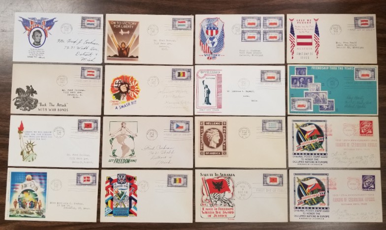 909-921 (13), "5 c. Overrun Countries", 1943-44 Issues, 156 Diff. Cacheted F.D.C.'s, Includes 30 with Blks. of 4 and 2 with Czechoslovak Republic Poster Stamps, Sound Cond., F-VF, SCV is About $950.00 (Image)