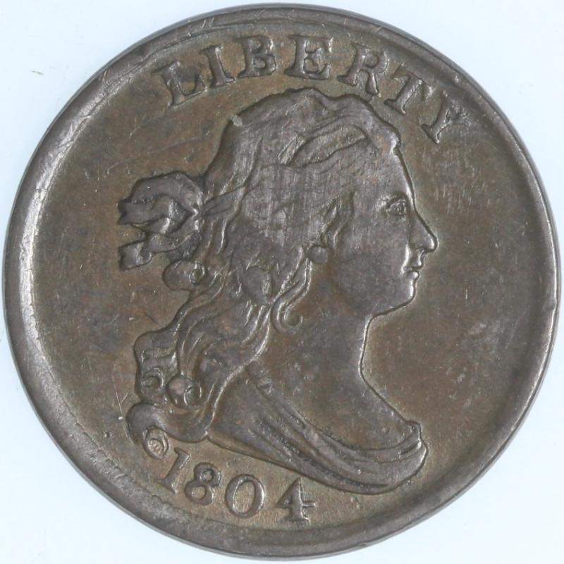 1804 Draped Bust Plain 4; No Stems VF+ lovely brown original. (Image)