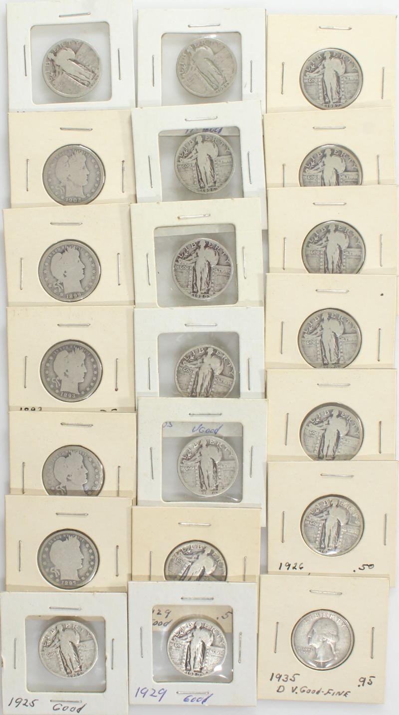 $14 face 90% Quarters Washington and Standing Liberty in 2x2s. Avg circ but a few are nicer. (Image)